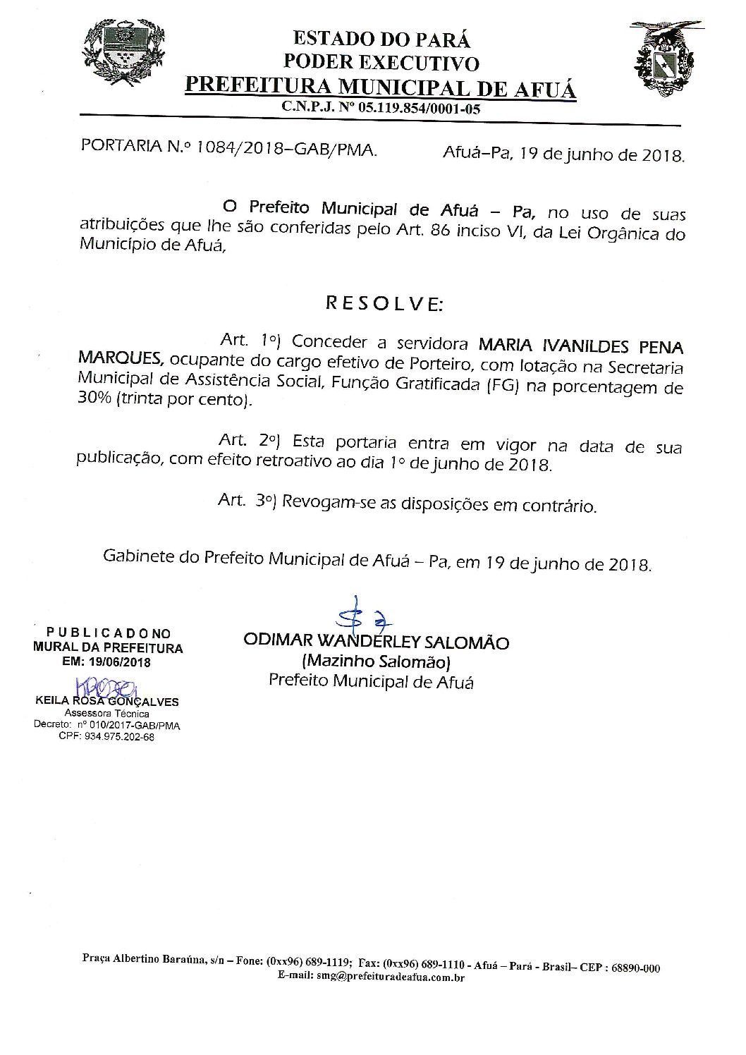 Portaria nº 1084 -2018 – FG – Mª Ivanildes Pena