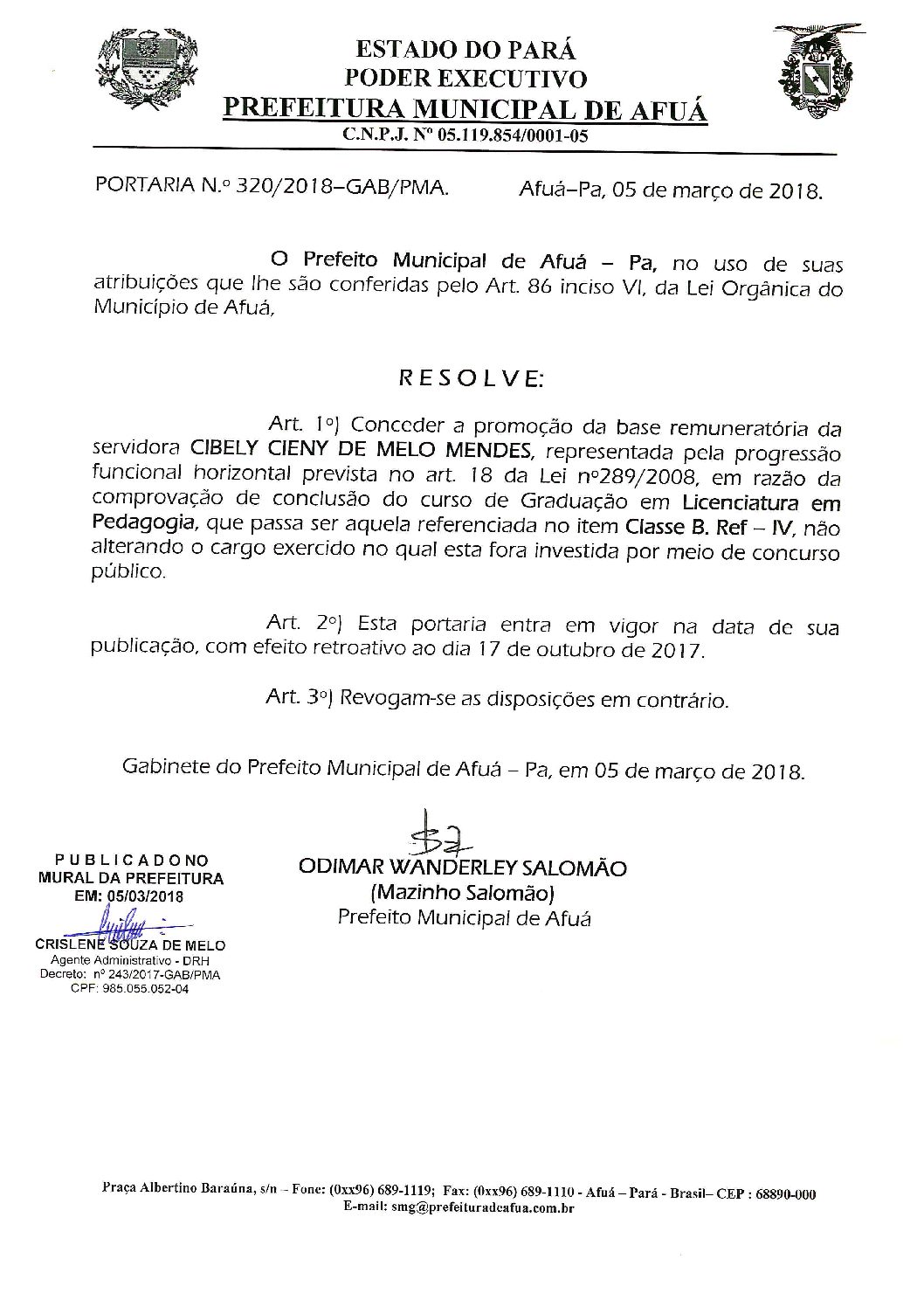 Portaria Nº320-2018 – Classe – Cibely Cieny de Melo